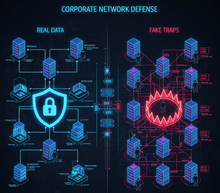 - Decoy servers and applications: Fake but realistic versions of company systems.