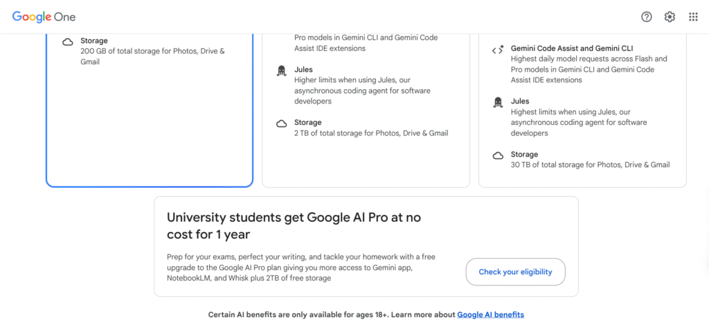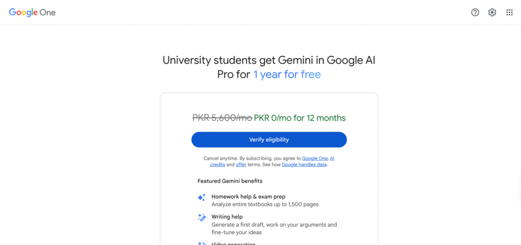 | 🆕 New Google One Users Only | The student offer is only for new users of Google One AI Premium. If you already have an active paid Google One subscription or are part of a Google Family Group plan, you might not be eligible. You can cancel your existing plan and reapply using a new account if needed. |