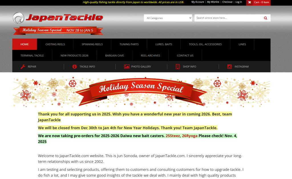 Japantackle.com sells expensive Japanese fishing reels and rods at prices far lower than U.S. stores. The site looks old, it’s based in Japan, and buyers have to enter their credit card on a foreign website — which makes many anglers nervous.